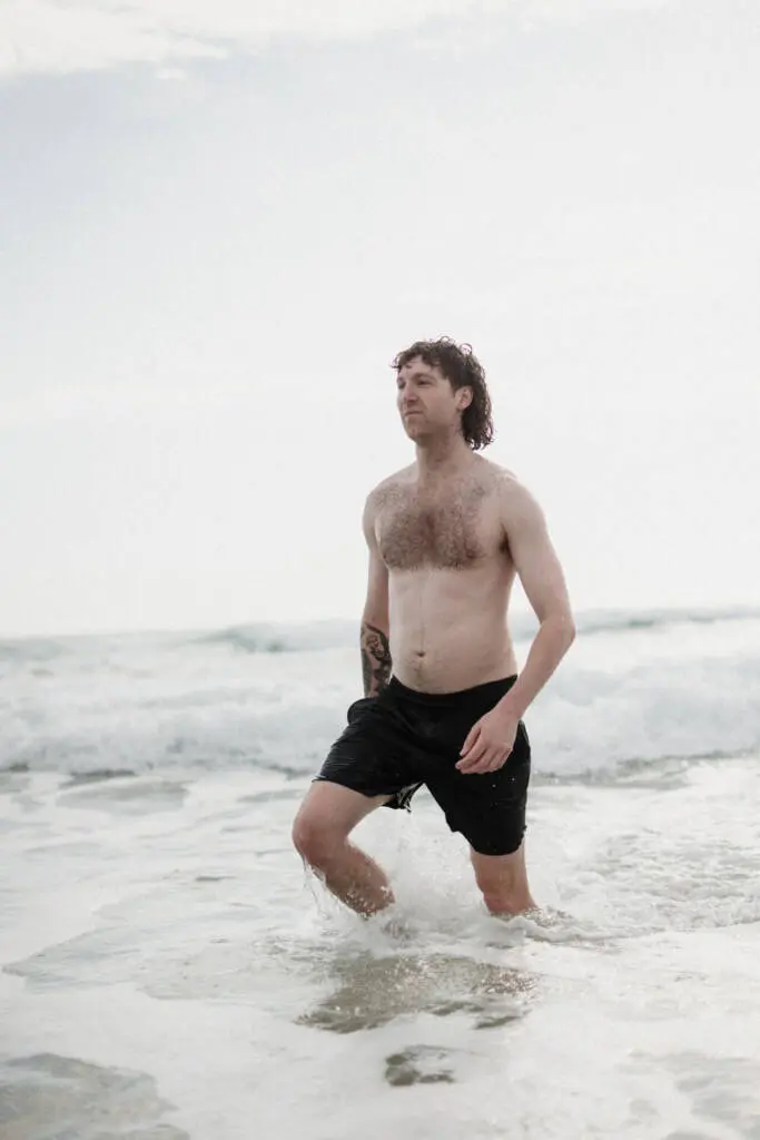 Throughout the whole time I engaged with them I really tried to stay out of my head and be in the moment letting my natural curiosities come out. After a bit of time photographing each person separately, I finally got to my initial curiosity about why they were walking the beach so early in the morning. The man photographed above mentioned that because of the full moon the previous night it meant that the tides would be considerably high. The forecast had said the tides would be high around 8:30 in the morning and they were out early canvassing parts of the beach. They didn’t have any surfboards so I assumed they were going out for a nice morning swim on a Friday morning.