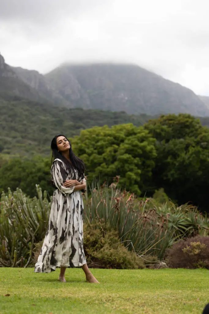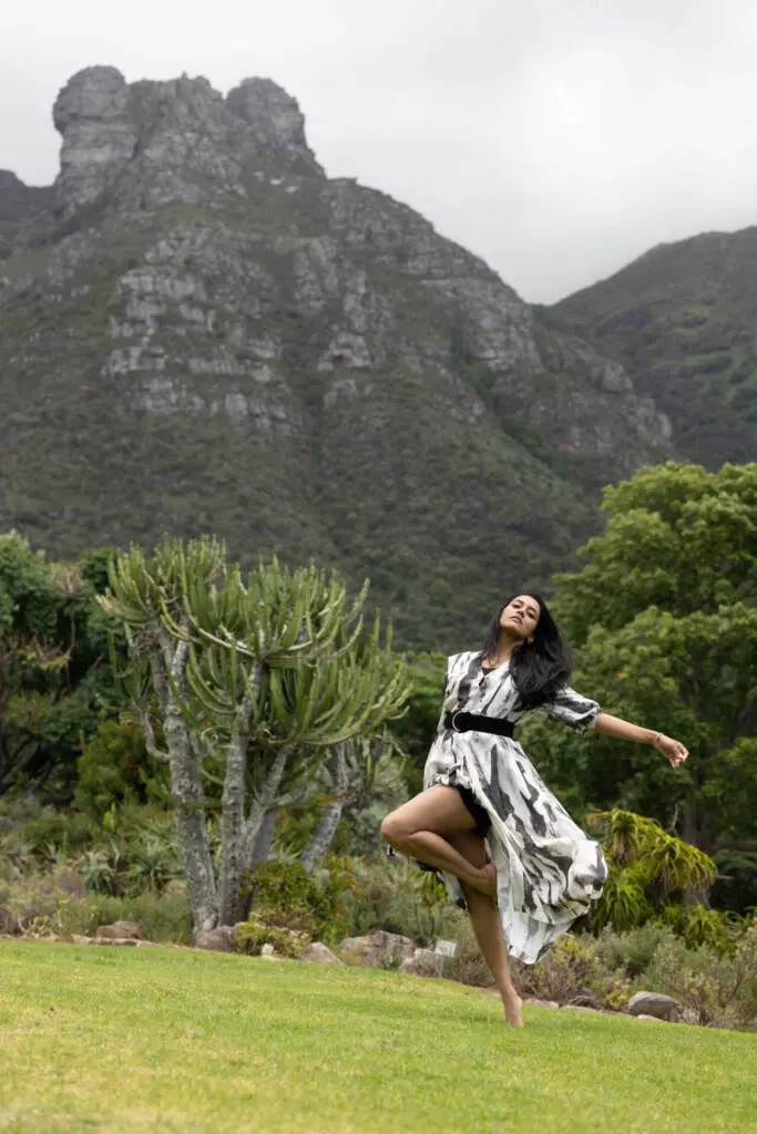 After a relaxing brunch, we sat by the cactus garden area admiring Table Mountain and listening to legends of centuries past of certain areas of the peak. While we were relaxing I noticed how flowy Bella’s dress was and it reminded me of a Valentino ad of Zendaya in Italy. She graciously allowed me to capture an interpretation of the ad.
