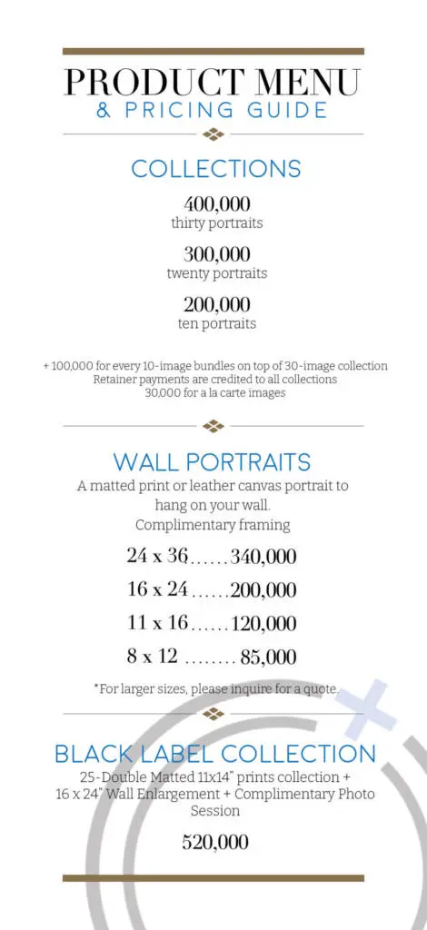 We are so excited to share the images we’ve made during our time together. We want to share with you our price list and print options so that you have everything you need before our photo reveal. We absolutely encourage you to review our product menu and pricing guide before we see you at your appointed photo reveal date and time.