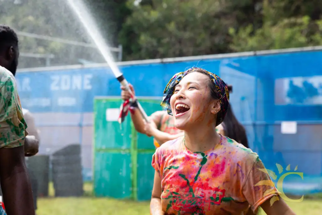I will out myself on this one and say I did not know what I was in store for. I remember being told, “It’s an outdoor event. People will get a bit dirty.” My idea of dirty was woefully underestimated by the massive amounts of water, paint and mud. As I got of the bus from a Chiba train station, I clutched my camera wondering if it would make it out alive.