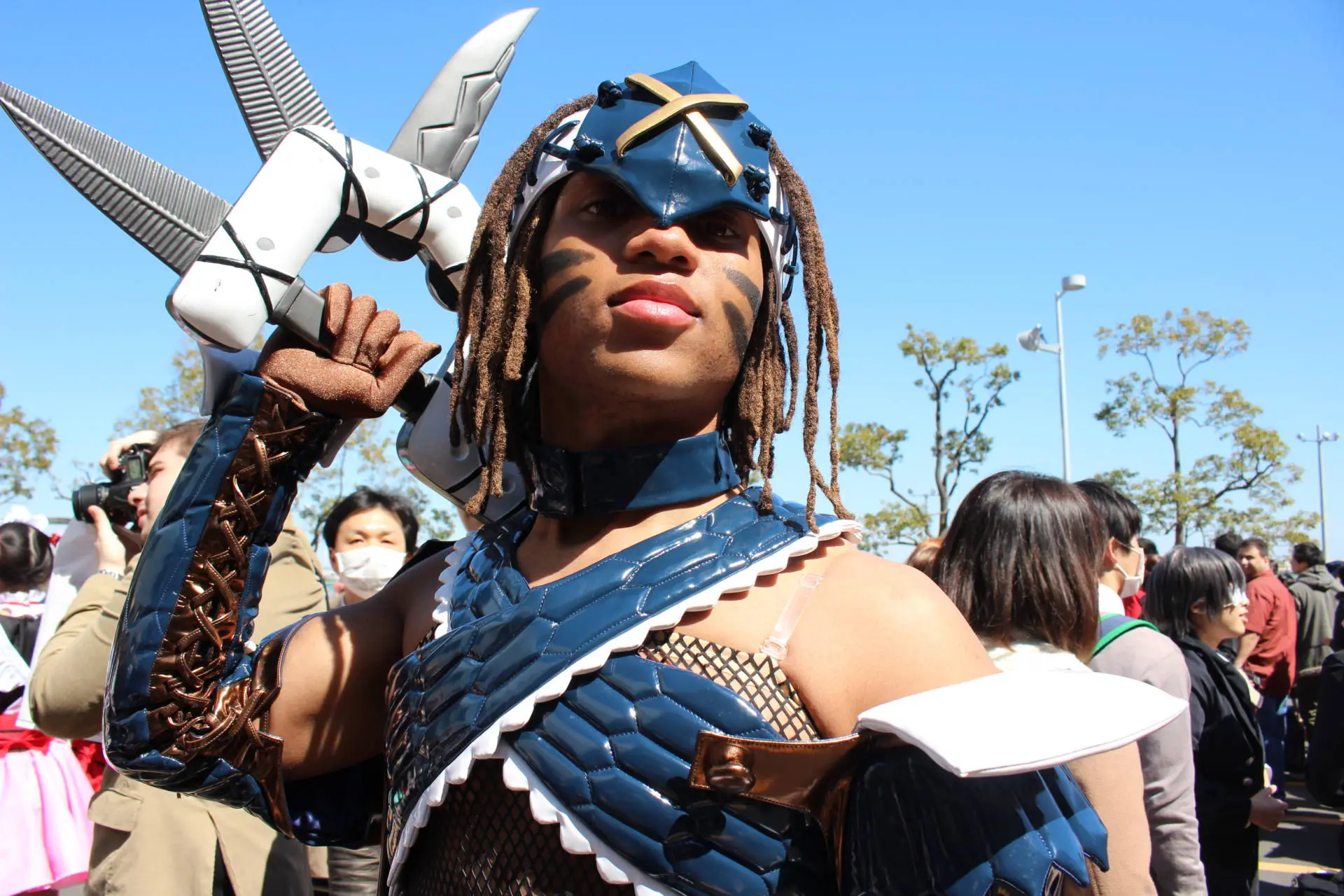 The background for the gentlemen in the first two photos really enhanced the militaristic mood of admirals whom they were dressed as. The lovely lady in the third photo got fully into her character, Z3, a shy yet powerful character. Using the window perch to rest on, viewers can easily piece together a story of a potential attack!The last two, I enjoy a lot. As my clients were there with me as we took photos, they explained the similarities the bricked hallway had with a scene in Kancolle. Just listening to their excitement as they pieced together which character should sit with whom and where the Shuri bucket, or Repair bucket, should go allowed me to put the shoot together. Despite not being familiar with Kancolle, I was happy to bring my client’s vision to life.The efforts to find the perfect background may seem a bit too much effort, not to mention the fact that some amateur cosplay photographers are simply happy to see their favorite characters in the flesh. This makes the desire to find the best background a backburner task. But let’s be fair, there are tons of convention attendees who bring their cameras and excitement to con events all over the world. It’s a pause in life to bring out the fantasies they often enjoy. How often does your average Yuri!!! on ICE fan get to see Victor Nikiforov? As amazing as it would be to photograph a Victor Nikiforov-clad cosplayer in real ice skates on an actual ice rink, it’s not going to be a doable photo at ANY local convention, ANYWHERE!So, what do you do? Well you could do what some of these guys do at conventions:But if bringing the expensive camera, lenses, the reflector, the speedlight and diffuser is a bit too much, bring a business card. Serious cosplayers most likely have their own business cards to exchange with other photographers, cosplayers, and media outlets. So exchange cards and plan out simple and easy to do photo shoots with your favorite characters. Scout out that ideal location or background that would best fit the character and go for it! Most likely, if the cosplayer agrees to a future shoot, they will love the photos as a keepsake to post online and will be open to participating as long as you respects their conditions. The cosplayer might bring a friend, present their own contingencies, or simply decline your request. In the end, it is best to respect the choices of the cosplayer and settle for a simple photo with the best background you can find at the convention site. Like this one: